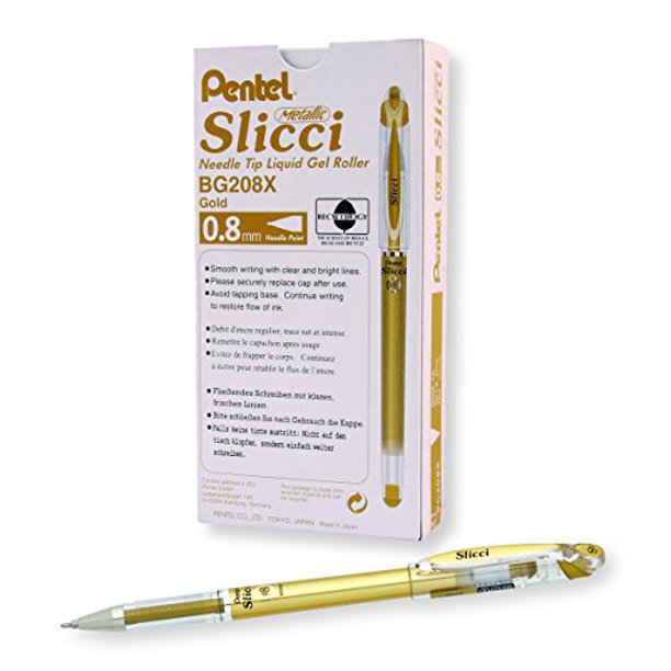 Pentel Arts Slicci Metallic 0 8 Mm Needle Tip Gel Pen Gold Ink Box Of 12 Bg208 X Walmart Com